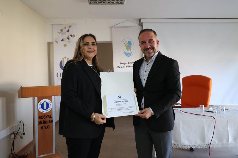 Söyleşi programı Sosyal Bilimler Meslek Yüksekokulu Müdürü Prof. Dr. Cemile BAHTİYAR KARADENİZ'in programa katılımlarından dolayı Perşembe Belediye Başkanı Cihat ALBAYRAK’a teşekkür belgesi takdimi ile sona erdi.