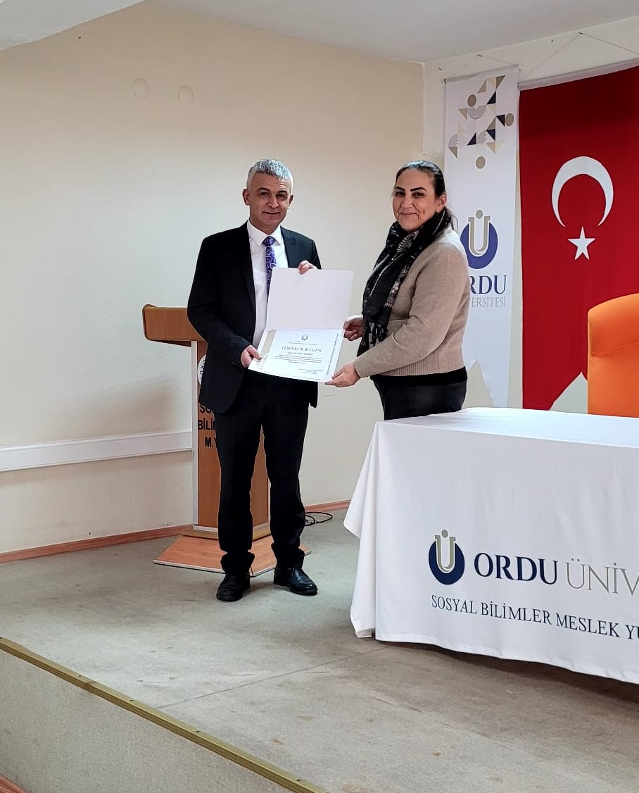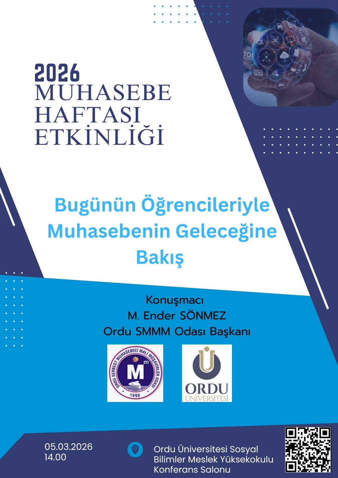 Her yıl 1-7 Mart tarihleri arasında kutlanan Muhasebe Haftası kapsamında Meslek Yüksekokulumuzda Ordu SMMM Odası Başkanı M. Ender Sönmez ve Oda Sekreteri Tuğrul Odabaş tarafından Muhasebe ve Vergi Bölümü öğrencilerine yönelik “Bugünün Öğrencileriyle Muhasebenin Geleceğine Bakış” isimli konferans etkinliği düzenlenmiştir. Etkinlikte, kullanımı gitgide yaygınlaşan e-uygulamaların önemi ve bu uygulamaların muhasebecilik sektöründe mesleğe getirdiği kolaylıklar vurgulanmıştır. Bu konuyla ilgili olarak Sönmez, e–uygulamaların artmasına rağmen muhasebe personellerine olan ihtiyacın devam edeceğini dile getirirken, Odabaş da muhasebe sistemlerinin sürdürülebilirlik raporlaması konusundaki ihtiyaca dikkat çekmiştir. Öğrencilerinin sorularıyla devam eden etkinlik, Meslek Yüksekokul müdürü Prof. Dr. Cemile Bahtiyar Karadeniz’in teşekkür belgesi takdimiyle son bulmuştur.
